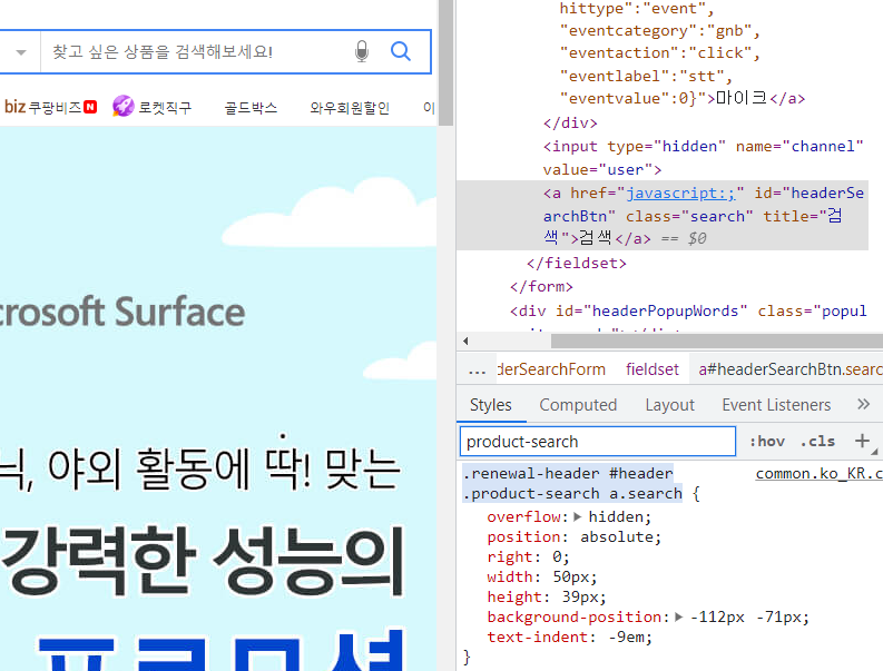 검색 글씨와 더불어 검색버튼의 백그라운드컬러가 살아남을 알 수 있다!