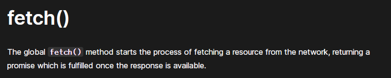 fulfilled된 프로미스를 리턴하는 메소드 = fetch